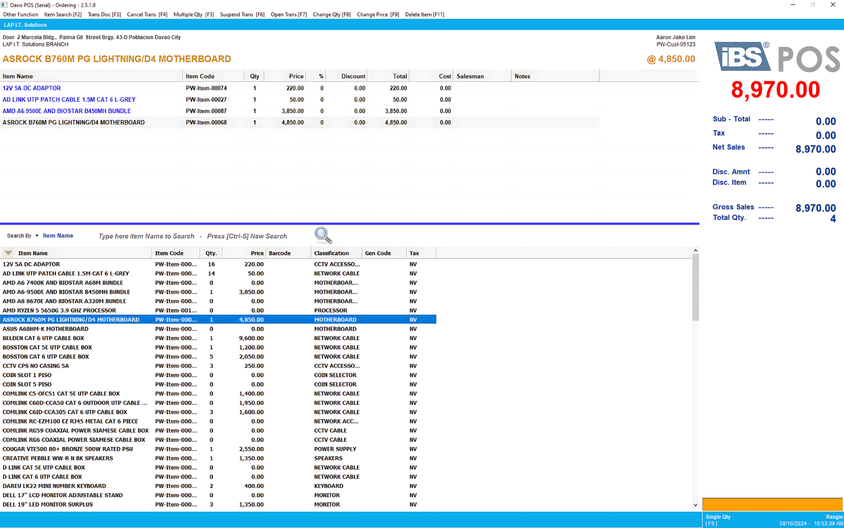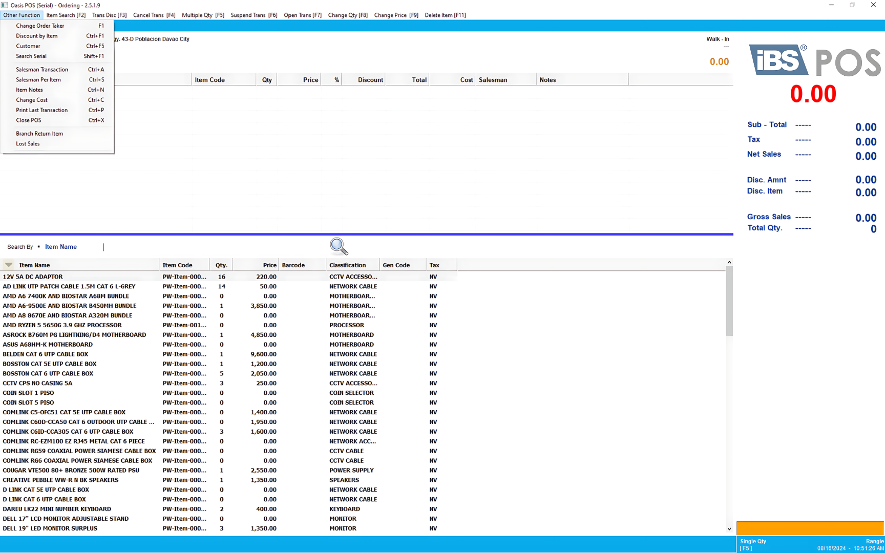 • Add Items & Change Cost